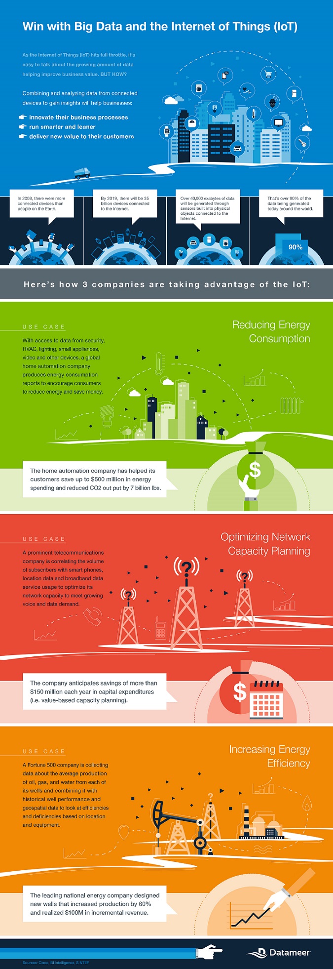 By utilizing the Internet of Things (IoT) and analytics, companies are able to learn where there are inefficiencies and innovate their business to run smarter and leaner delivering new value to their customer base. Our friends over at Datameer just released a new infographic relating to Big Data and the IoT.