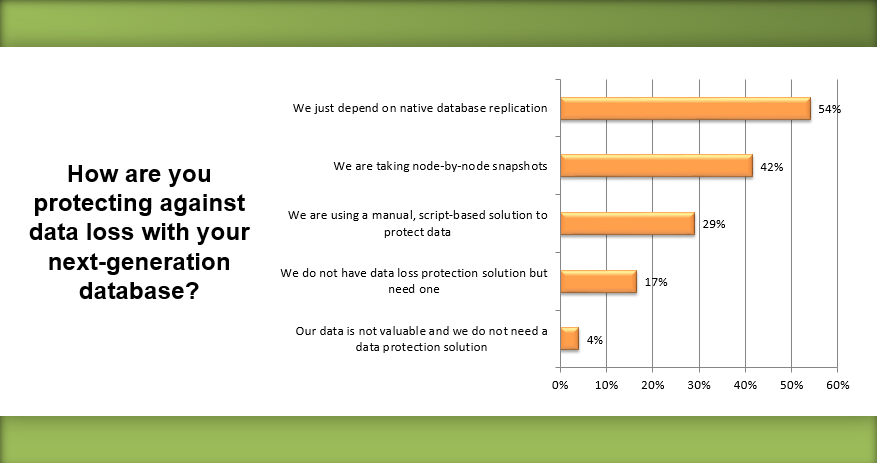 - 61% of enterprise IT and database professionals cite poor backup and recovery solutions available today as preventing adoption of next-generation database technology.