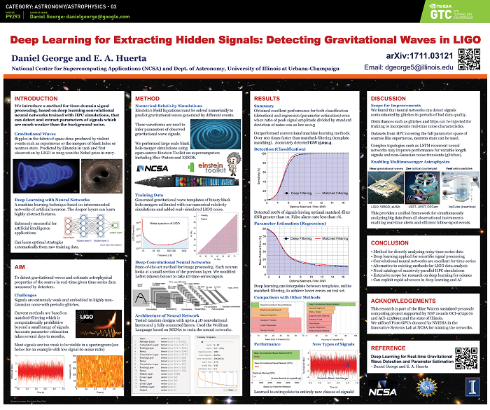 One of my favorite features of GTC is the academic flavor supported by the rows and rows of posters on the main concourse level. It spent a couple of hours staring at my favorite handful. Here is a gallery of all the posters submitted. Due to my previous life as a researcher in astrophysics, my favorite poster was “Deep Learning for Detecting Gravitational Waves.”