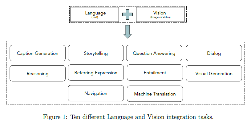 Integration of vision and language tasks has seen a significant growth in the recent times due to surge of interest from multi-disciplinary communities such as deep learning, computer vision, and natural language processing. This survey focuses on ten different vision and language integration tasks in terms of their problem formulation, methods, existing datasets, evaluation measures, and comparison of results achieved with the corresponding state-of-the-art methods.