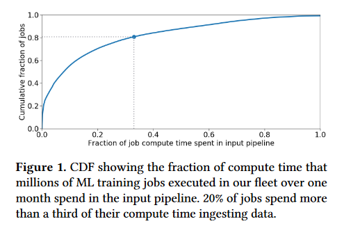 Training machine learning models requires feeding input data for models to ingest. Input pipelines for machine learning jobs are often challenging to implement efficiently as they require reading large volumes of data, applying complex transformations, and transferring data to hardware accelerators while overlapping computation and communication to achieve optimal performance. This paper presents tf.data, a framework for building and executing efficient input pipelines for machine learning jobs. The tf.data API provides operators which can be parameterized with user-defined computation, composed, and reused across different machine learning domains. These abstractions allow users to focus on the application logic of data processing, while tf.data’s runtime ensures that pipelines run efficiently. The paper demonstrates that input pipeline performance is critical to the end-to-end training time of state-of-the-art machine learning models. tf.data delivers the high performance required, while avoiding the need for manual tuning of performance knobs.