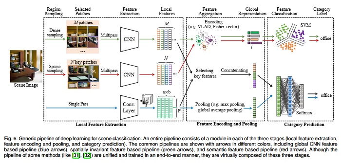 Scene classification, aiming at classifying a scene image to one of the predefined scene categories by comprehending the entire image, is a longstanding, fundamental and challenging problem in computer vision. The rise of large-scale datasets, which constitute a dense sampling of diverse real-world scenes, and the renaissance of deep learning techniques, which learn powerful feature representations directly from big raw data, have been bringing remarkable progress in the field of scene representation and classification. To help researchers master needed advances in this field, the goal of this paper is to provide a comprehensive survey of recent achievements in scene classification using deep learning. More than 260 major publications are included in this survey covering different aspects of scene classification, including challenges, benchmark datasets, taxonomy, and quantitative performance comparisons of the reviewed methods. In retrospect of what has been achieved so far, this paper is concluded with a list of promising research opportunities.