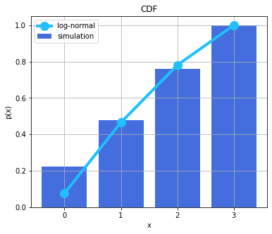 Cdf plot of log normal vs the simulated points: