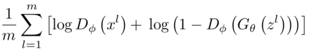 LD (φ, θ) = Ex∼preal [log Dφ (x)] + Ez∼prior [log (1 − Dφ (Gθ (z)))] =