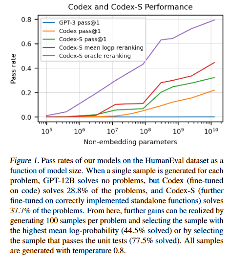 This paper introduces Codex, a GPT language model fine-tuned on publicly available code from GitHub, and study its Python code-writing capabilities. A distinct production version of Codex powers GitHub Copilot. On HumanEval, a new evaluation set released to measure functional correctness for synthesizing programs from docstrings, the model solves 28.8% of the problems, while GPT-3 solves 0% and GPT-J solves 11.4%. Furthermore, repeated sampling from the model is a surprisingly effective strategy for producing working solutions to difficult prompts. Using this method, 70.2% of problems are solved with 100 samples per problem. Careful investigation of the model reveals its limitations, including difficulty with docstrings describing long chains of operations and with binding operations to variables. Finally, the potential broader impacts of deploying powerful code generation technologies, covering safety, security, and economics is discussed.