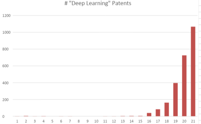 Deep Learning Patent Update – provided by Nelson E. (Nick) Brestoff, J.D., M.S. Exec. Manager & Chief Inventor, Intraspexion LLC. We’re half way through December and the # of new “deep learning” has reached 1067, with two weeks to go. The “Land Rush” is on track to jump from 726 patents in 2020 by over 50% to 1,100 (plus or minus a couple) in 2021.