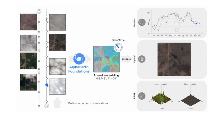 Google DeepMind has announced the AlphaEarth Foundations, an AI model designed to function like a virtual satellite and to characterize the planet’s terrestrial land and coastal waters by integrating huge amounts of Earth observation data into a unified digital representation, or “embedding,” that computer systems can process.